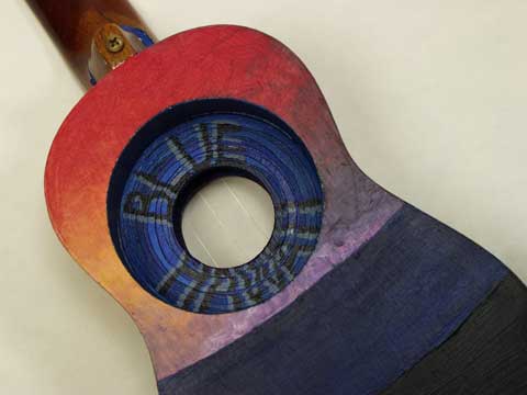 with a ukulele shaped deckle that has a heal shape on the top and attached