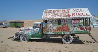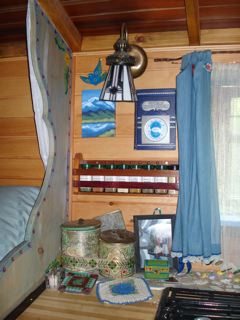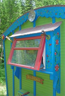 These photos document the finished exterior and interior details of the gypsy wagon we made for our 2010 Wandering Book Artists Book Arts Road Trip